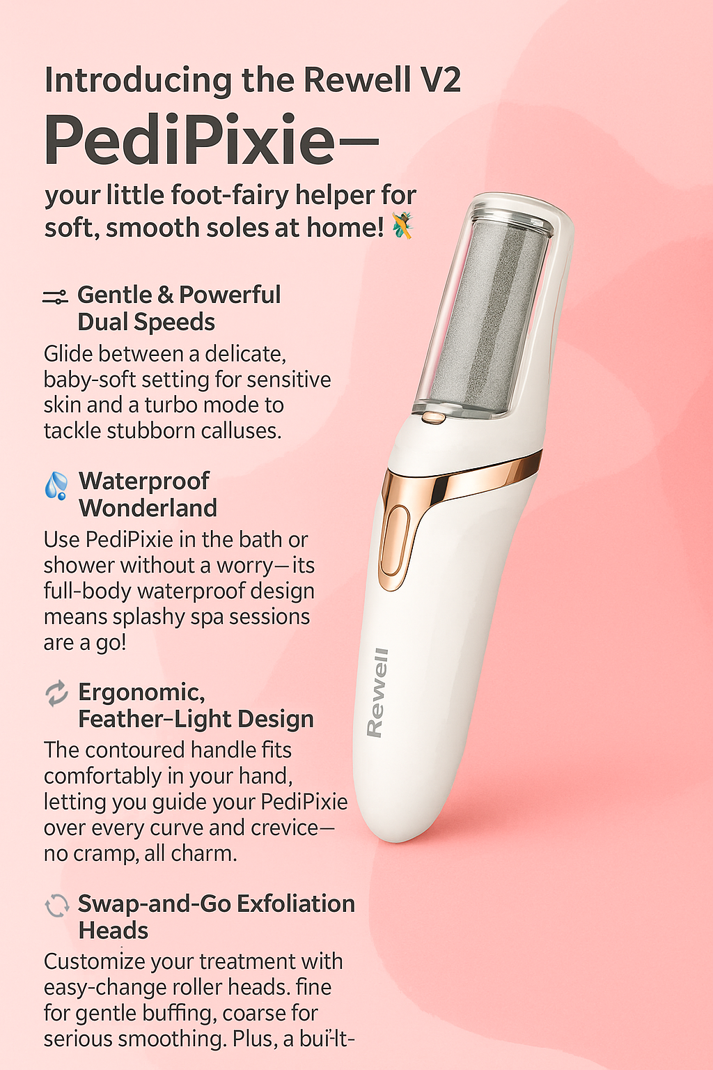 Transform tired feet into twinkle-toes in minutes—daily magic has never been so easy. Add the Rewell V2 “PediPixie” to your routine and feel the fairy-tale difference 🦶💕.